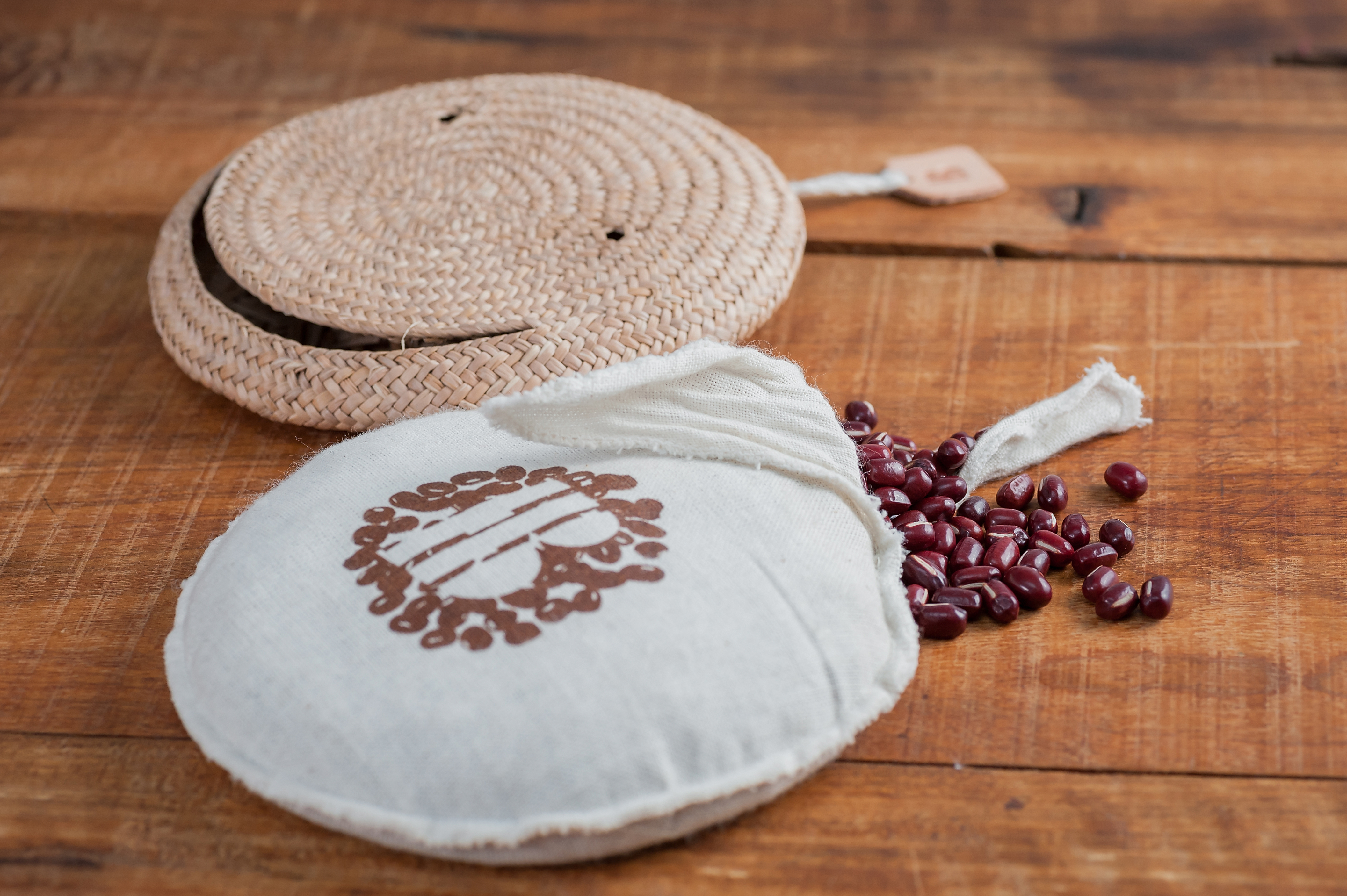 常保身體的溫暖不讓身體受寒,將紅豆放入棉製內袋微波爐加熱1~2分鐘,使用親膚性與隔熱性佳的藺草材質製作暖暖包,是可以達到溫熱舒緩身體不適的效果。