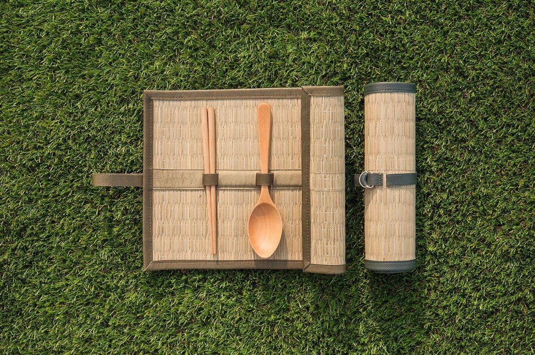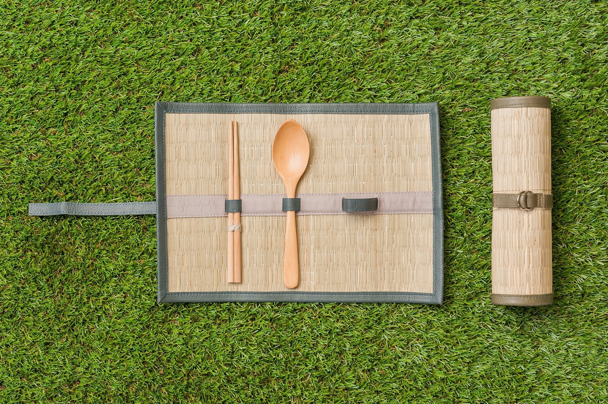 「藺草餐具收納卷軸」 餐具卷軸主要使用的材質有兩種,一是採用西港唯一僅存的一家工廠所生產的機器編織的藺草蓆,而另一個是使用同時具有柔軟、堅韌特性的皮革。 特別選用機器編藺草蓆的製成卷軸狀收納的餐具袋,此款設計我們用薄皮條包覆藺草蓆的邊,解決草蓆因裁剪會容易鬆散掉的問題,同時為了解決在裁縫的過程中,無法均衡對折皮條的問題,我們在皮革條上的中間線每隔1公分處打洞,其用意除了讓對折的皮條能對稱包覆黏貼在草蓆上,進而讓餐具袋雙面的車縫線對稱,另一方面皮條上的洞,也能讓使用者透過數算動的數量,就知道餐具袋長與寬的尺寸。 分享此文: 按一下即可分享至 X(在新視窗中開啟) X 按一下以分享至 Facebook(在新視窗中開啟) Facebook 分享到 Pinterest(在新視窗中開啟) Pinterest 更多 按一下即可以電子郵件傳送連結給朋友(在新視窗中開啟) 電子郵件 分享到 LinkedIn(在新視窗中開啟) LinkedIn 分享到 Tumblr(在新視窗中開啟) Tumblr 分享到 Pocket(在新視窗中開啟) Pocket 分享到 WhatsApp(在新視窗中開啟) WhatsApp 按一下以分享到 Telegram(在新視窗中開啟) Telegram 喜歡 正在載入... 相關 2016-04-252021-08-17 by 113工房 | 113kobo Categories: 商店 Shop 發表留言