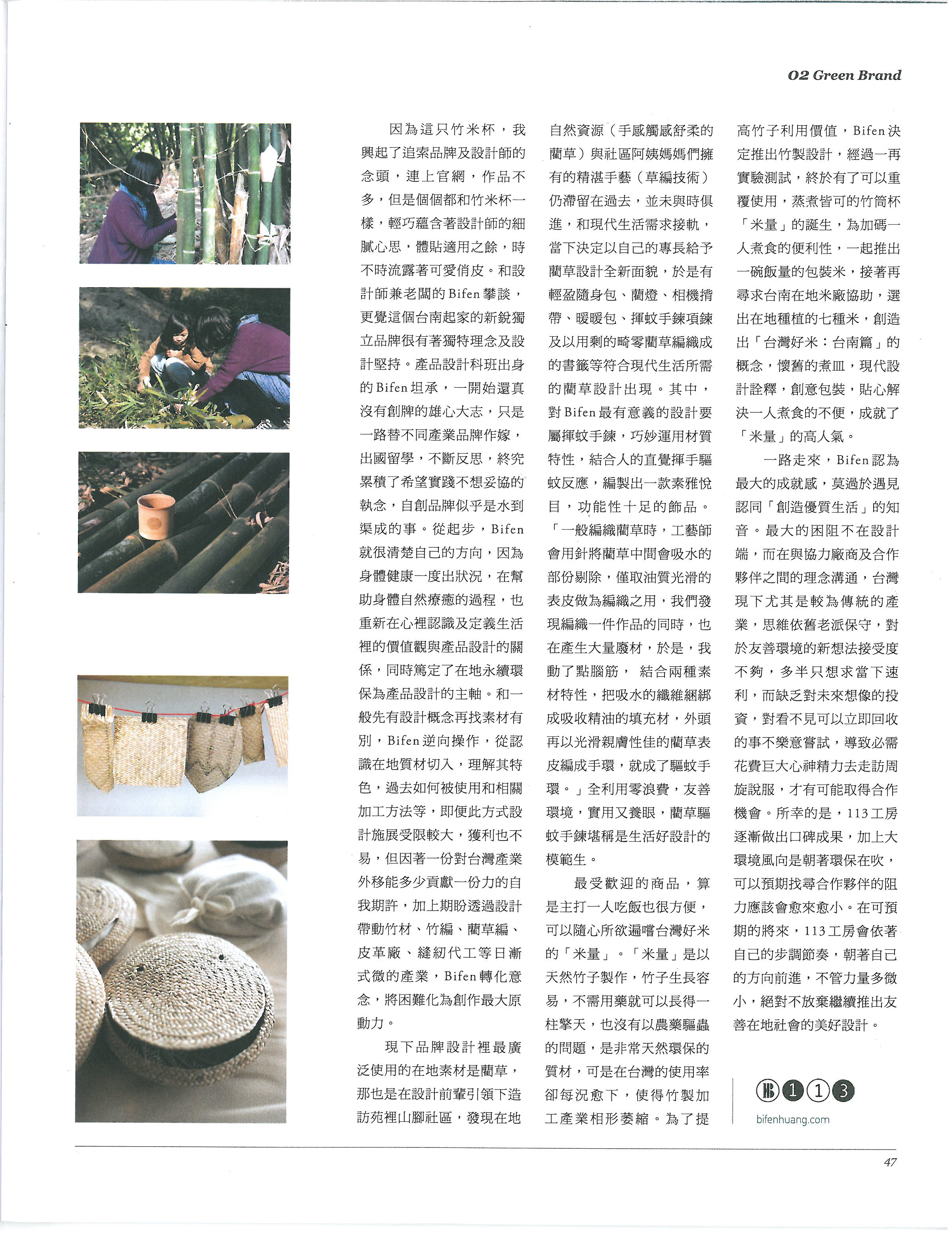 113KOBO discover the beauty of natural materials, such as wood, bamboo, triangular rushes, and leather. We use and apply their unique characteristics in the product design- Bamboo Rice Cup, Miss Smile(heating pad), Rebag(cycle bag) etc.